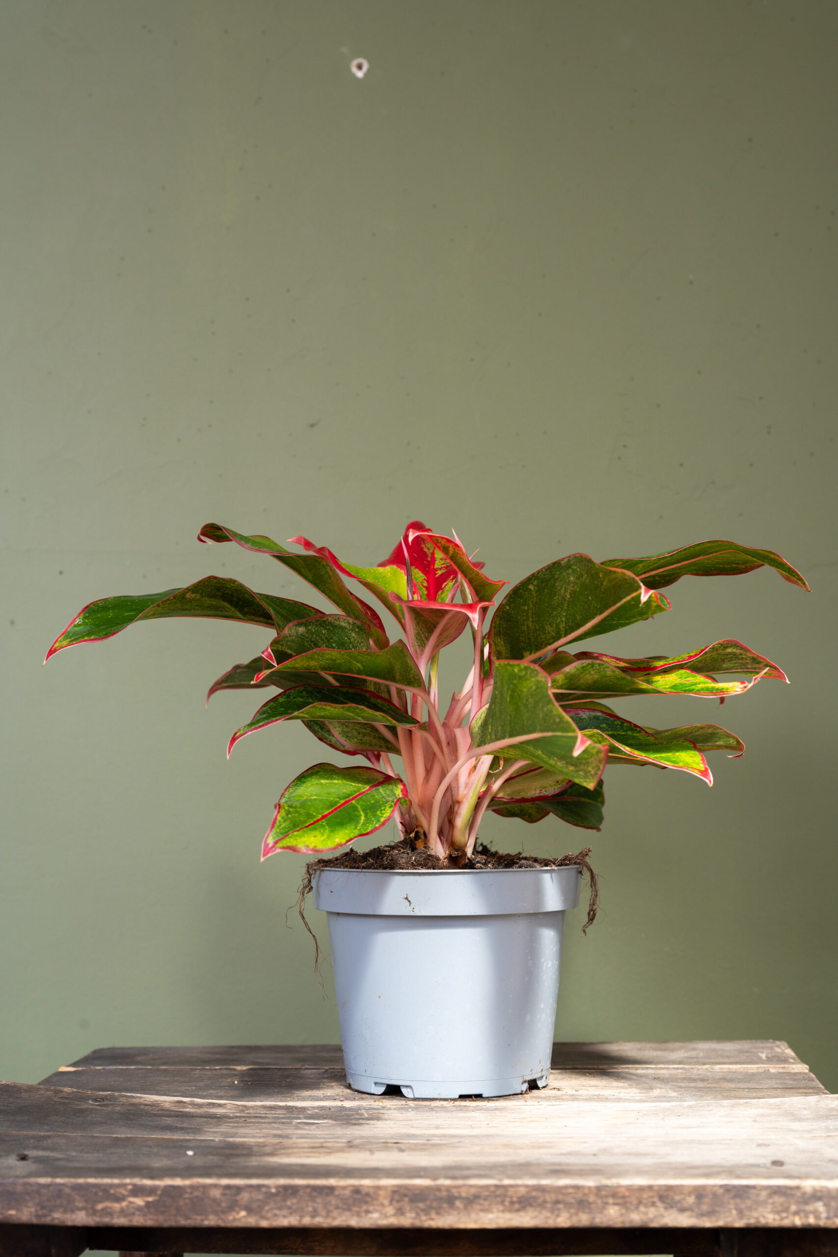 Aglaonema King of Siam is an extremely easy to grow houseplant. The green leaves are elegantly flushed with red markings.